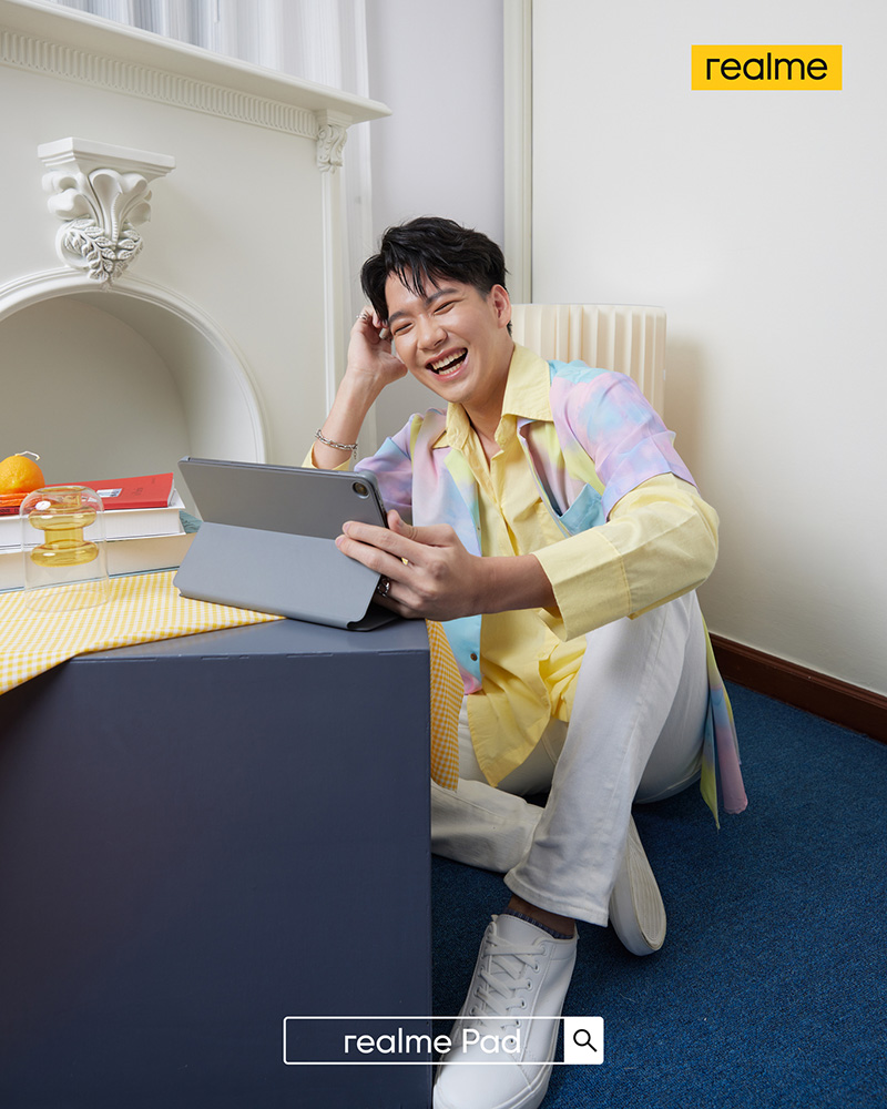 สำหรับ realme Pad มาพร้อมกับสโลแกน Ultra Slim. Real Fun ออกแบบเพื่อคนรุ่นใหม่ด้วยดีไซน์บางหรู เพียง 6.9 มม. โดดเด่นด้วยจอใหญ่ถึง 10.4 นิ้ว แบบ WUXGA+  แบตเตอรี่ขนาดใหญ่ 7100 มิลลิแอมป์ พร้อมลำโพงเกรดพรีเมียม 4 ตัว กับเทคโนโลยี Dolby Atmos และที่สำคัญคือฟีเจอร์กล้องหน้า Ultra-wide มุมมองกว้างถึง 105 องศา ขับเคลื่อนด้วยขุมพลัง Octa-core Helio G80 และ GPU Mali G52 ซึ่งเป็นชิปเซ็ตระดับเกมมิ่ง ทำให้ realme Pad รองรับการทำงานของแอปต่าง ๆ ได้อย่างไหลลื่น มอบอัตราเฟรมเรตที่เสถียรทั้งในการเล่นเกมและการดูคอนเทนต์ทุกรูปแบบ