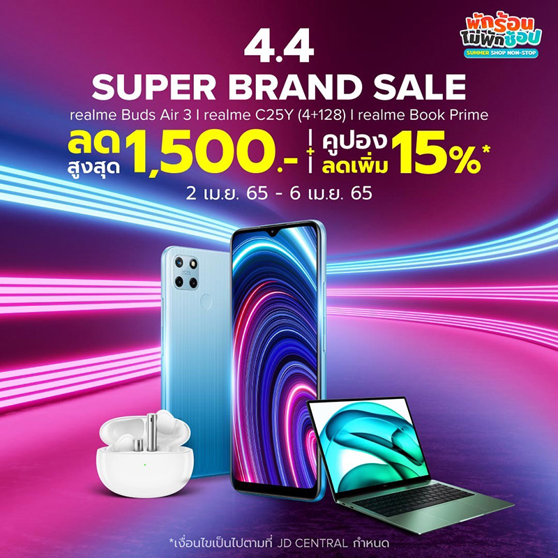 realme แบรนด์เทคโนโลยีเพื่อคนรุ่นใหม่ที่เติบโตเร็วที่สุดในโลก จัดโปรโมชั่นพิเศษ 4.4 realme MEGA SALES เอาใจแฟน ๆ เรียลมี ในช่วงเทศกาลปีใหม่ไทยที่ใกล้จะถึงนี้ มอบส่วนลดพิเศษสูงสุด 50% พร้อมรับโค้ดสูงสุด 1,500 บาท ที่ realme Official Store บน 3 ช่องทางออนไลน์ยักษ์ใหญ่ ทั้ง Shopee Lazada และ JD Central พิเศษ! สำหรับ Top Spender สูงสุด 10 คนแรก รับฟรี! ของสมนาคุณ