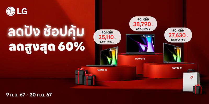 โน้ตบุ๊กระดับพรีเมียม LG gram และ LG gram Pro ทั้งหมด 5 รุ่นย่อย โดยมีราคาเริ่มต้นที่ 46,020 – 73,090 บาท พิเศษ! ตั้งแต่วันนี้ – 30 กันยายน 2567 แอลจีจัดโปรฯ ลดราคาพิเศษสำหรับผู้ที่ซื้อโน้ตบุ๊ก LG gram สูงสุด 60% และลดเพิ่มอีก 10% สำหรับ LG member พร้อมฟรีค่าจัดส่งและฟรีบริการ Exclusive care