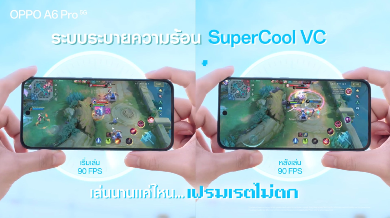 น้องๆ สายเกมเมอร์ที่ต้องเจอกับอากาศร้อนจนสมาร์ตโฟนร้อนจี๋ เล่นเกมได้ไม่เต็มที่ เตรียมบอกลาปัญหาพวกนี้ไปได้เลย! ด้วยระบบระบายความร้อน SuperCool VC ที่ถูกออกแบบมาเพื่อสายเกมเมอร์ ตัวเครื่องจะเย็นลงอย่างมีประสิทธิภาพ โดยเฉพาะตรงบริเวณปุ่มควบคุม ที่มือเราสัมผัสบ่อย คราวนี้ไม่ว่าจะเกมเดือดแค่ไหน เครื่องก็ยังเย็น ช่วยให้เล่นเกมได้ลื่นไหล ไม่มีอาการ Performance Drop ให้หงุดหงิด เล่นยาวๆ ได้ฟีลจัดเต็ม!