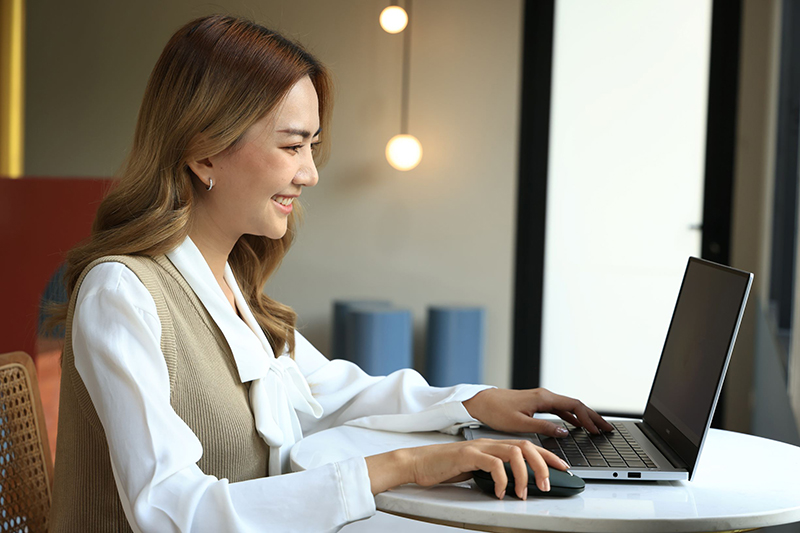 การนั่งในคลาสนานๆ หรืออุดอู้อยู่ในห้อง อาจทำให้สมองขาดออกซิเจนและส่งผลกระทบต่อประสิทธิภาพในการจดจำสิ่งต่างๆ ได้ ลองเปลี่ยนบรรยากาศในการทบทวนบทเรียนช่วงสอบโดยการไป Café Hopping หรือ Co-Working Space ที่มีบรรยากาศสบายๆ กาแฟให้จิบ และขนมหวานให้รับประทานดูบ้าง ซึ่งถ้าหากใช้แล็ปท็อปที่มีน้ำหนักเบา และบางพอที่จะใส่ในถุงผ้าได้ ก็จะถือไปตามที่ต่างๆ ได้ตามสบาย ระหว่างทบทวนอาจพักสมองโดยการถ่ายภาพเซลฟี่ ภาพขนม ใช้การเชื่อมต่อแบบไร้สายในการลากรูปส่งเข้าแล็ปท็อปเพื่อใช้โปรแกรมตัดต่อภาพ แล้วโพสต์ลงโซเชียลไปพลางๆ ก็จะช่วยให้การอ่านหนังสือไม่ตึงเครียดเกินไป