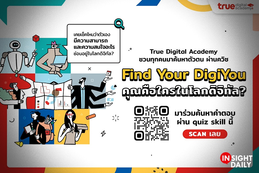 ทั้งนี้ ผู้ที่สนใจอัปสกิลทักษะข้างต้น สามารถค้นหาตัวตนบนเส้นทางอาชีพสายดิจิทัลที่ใช่ ผ่านควิซ Find Your DigiYou เพื่อหาแนวโน้มสายงานที่ควรพัฒนาต่อยอดเพื่อเพิ่มโอกาสให้ประสบความสำเร็จมากยิ่งขึ้น ทั้งนี้ ทรู ดิจิทัล อคาเดมี สถาบันการเรียนรู้ที่มุ่งส่งเสริมทักษะด้านดิจิทัลให้แก่บุคลากรและองค์กร เพื่อเป็นกำลังสำคัญในการยกระดับโครงสร้างพื้นฐานด้านดิจิทัลให้กับประเทศไทย