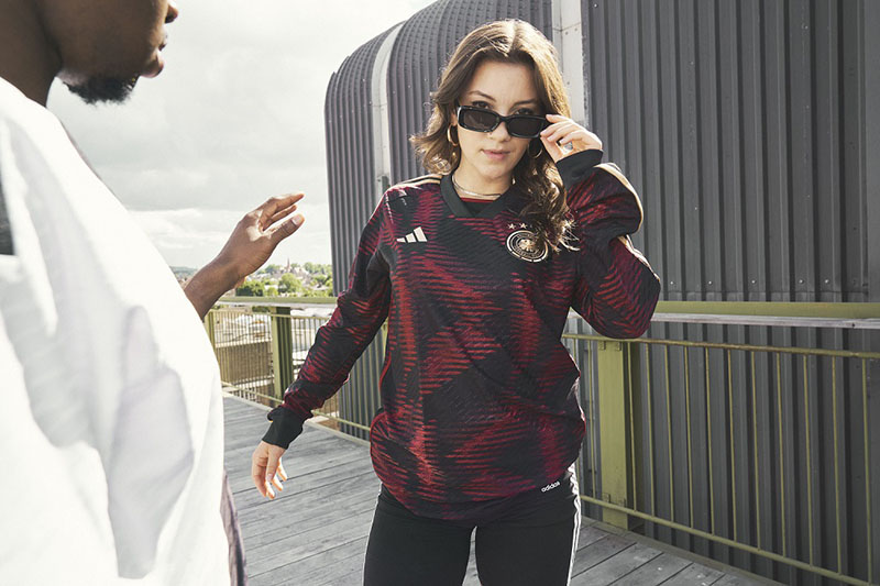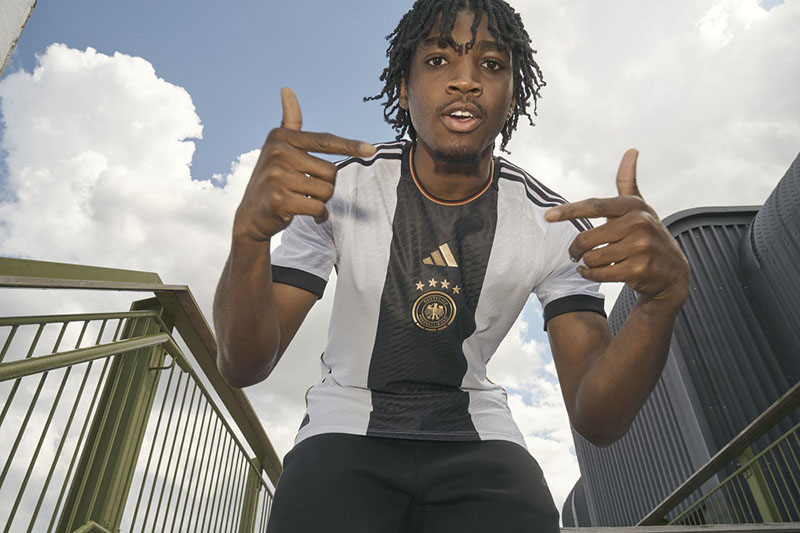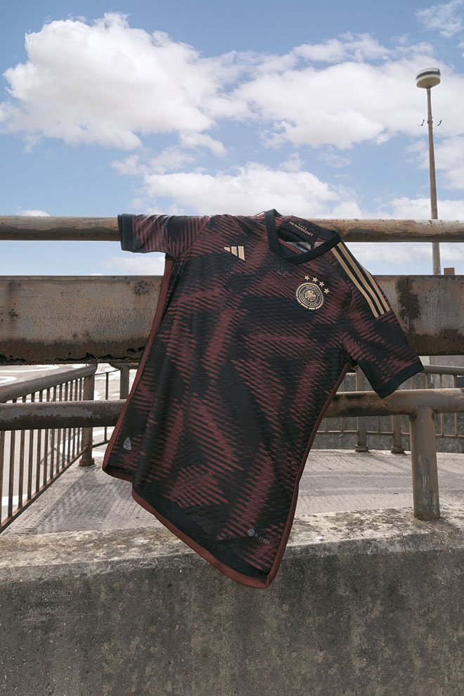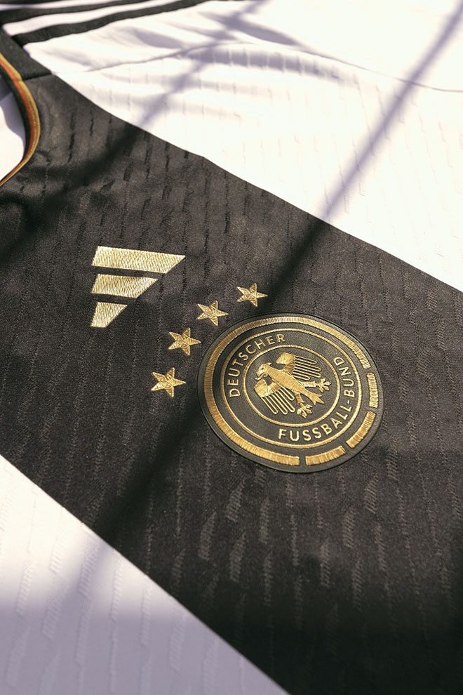 เสื้อแข่งขันเหย้าของทีมชาติเยอรมนี มีการใช้ความร้อนในการประทับตราสีทองที่กลางอก ซึ่งมีการวางแถบสีดำตรงกลางเสื้อ โดยได้แรงบันดาลใจมาจากชุดแข่งขันทีมชาติชุดแรกที่ยกระดับความสวยงามแบบเรียบง่ายขึ้นไปอีกขั้น ส่วนบริเวณคอเสื้อและข้างลำตัวมีการตกแต่งด้วยสีสันของธงชาติเยอรมนี ขณะที่เสื้อแข่งขันเยือนก็ได้ถ่ายทอดจิตวิญญาณของทีมด้วยการใช้สีสันของธงชาติและตกแต่งด้วยตัวอักษร D ที่มาจากคำว่า “Deutschland” แสดงให้ถึงสไตล์การเล่นฟุตบอลแบบไดนามิกของทีมชาติชุดนี้
