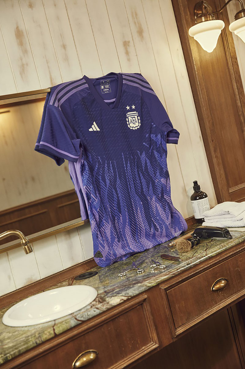 เสื้อแข่งขันเยือนของทีมชาติอาร์เจนตินา ได้รับแรงบันดาลใจมาจากความภาคภูมิใจในชาติและการแสวงหาความเท่าเทียมบนโลกใบนี้ ด้วยการใช้สีม่วงที่แสดงถึงความเท่าเทียมทางเพศ ผสมผสานด้วยลวดลายเปลวไฟที่มาจากดวงอาทิตย์แห่งเดือนพฤษภาคม (Sun of May) ที่มาจากธงประจำชาติ