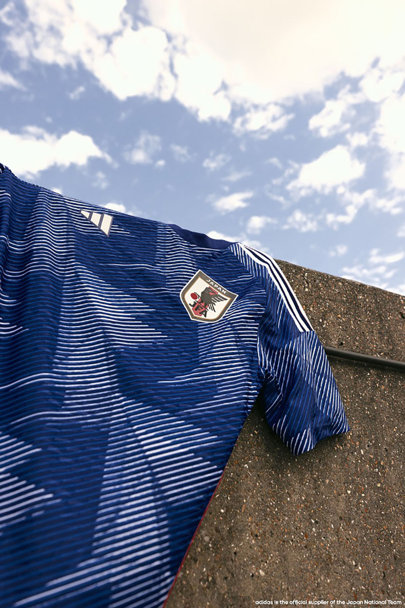 เสื้อแข่งขันเหย้าของทีมชาติญี่ปุ่นมีการแสดงตัวตนผ่านลวดลายโอริกามิรูปกาสามขา ขณะที่เสื้อแข่งขันเยือนก็มีการออกแบบที่แสดงให้เห็นถึงสไตล์การเล่นอันคล่องตัวของทีมชาติญี่ปุ่น ผ่านการประดับด้วยลวดลายกราฟิกโอริกามิที่แสดงให้เห็นถึงความรวดเร็วอย่างชัดเจน