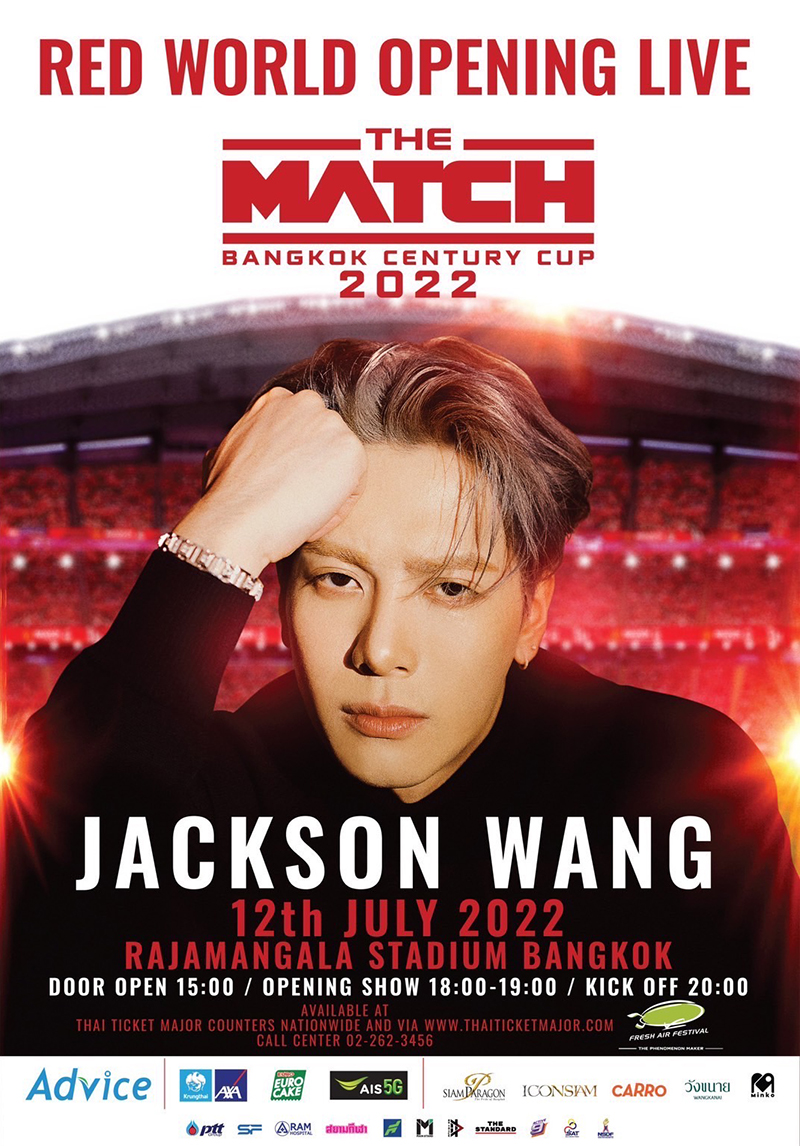 เติมเต็มความสมบูรณ์แบบและตอกย้ำความยิ่งใหญ่ของการแข่งขันในครั้งนี้ แอดไวซ์และเฟรชแอร์ เฟสติวัล จัดโชว์พิเศษการแสดงสดมินิคอนเสิร์ต ‘RED WORLD OPENING LIVE THE MATCH BANGKOK CENTURY CUP 2022’ จาก แจ็คสัน หวัง (Jackson Wang) วง GOT7 ต้อนรับแฟนฟุตบอลชาวไทยก่อนเตะในศึกแดงเดือด