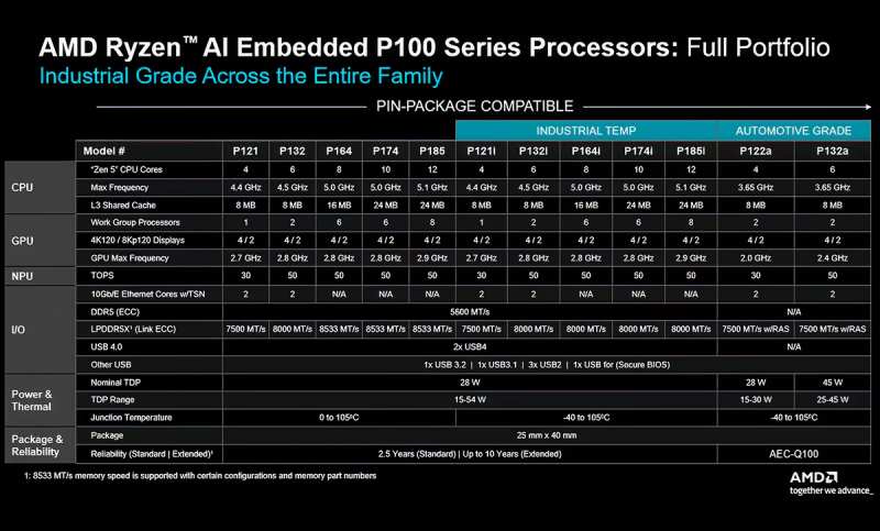 AMD ขยายไลน์อัปโปรเซสเซอร์ Ryzen AI Embedded P100 Series สำหรับโซลูชันระดับอุตสาหกรรมและ AI Edge