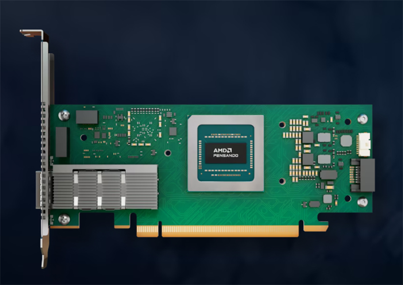 - AMD ได้ขยายกลุ่มผลิตภัณฑ์เครือข่ายประสิทธิภาพสูงเพื่อตอบสนองความต้องการด้านระบบเครือข่ายที่เปลี่ยนแปลงไปสำหรับโครงสร้างพื้นฐาน AI โดยเพิ่มประสิทธิภาพการประมวลผลของโปรเซสเซอร์ และกราฟิกการ์ดสูงสุด เพื่อมอบประสิทธิภาพ ความสามารถในการปรับขนาดเวิร์คโหลด และประสิทธิภาพทั่วทั้งระบบ ชิปหน่วยประมวลผลข้อมูล AMD Pensando Salina DPU มอบเครือข่ายส่วนหน้า (front-end) ประสิทธิภาพสูงสำหรับระบบ AI ในขณะที่ AMD Pensando Pollara 400 ซึ่งเป็นผลิตภัณฑ์กลุ่ม NIC ที่รองรับ Ultra Ethernet Consortium ช่วยลดความซับซ้อนของการปรับแต่งประสิทธิภาพและยกระดับเวลาในการผลิตให้ดียิ่งขึ้น