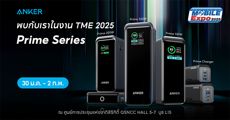 - วิธีร่วมกิจกรรม: แบ่งปันประสบการณ์การใช้งานผลิตภัณฑ์แองเคอร์บน Facebook พร้อมรีวิวบูธภายในงาน และติด #ANKERTME2025