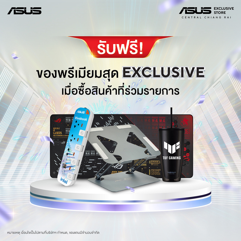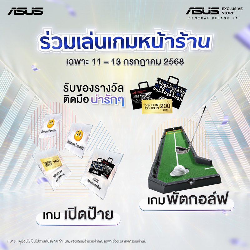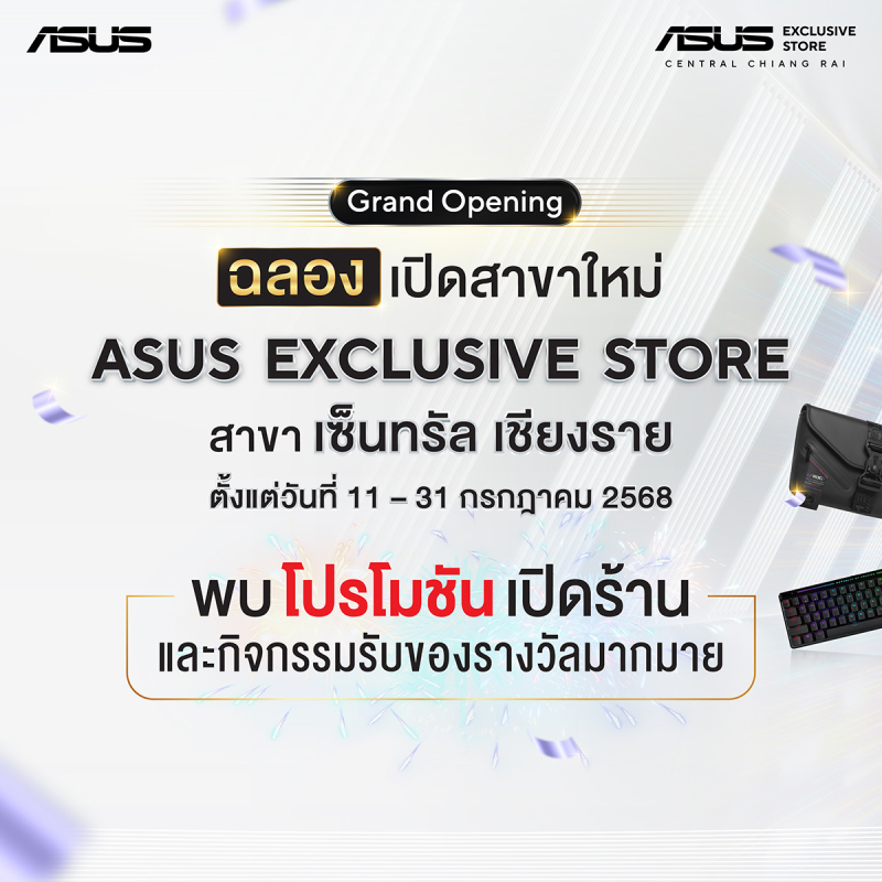 เอซุส ยังพร้อมเอาใจลูกค้า ASUS Exclusive Store สาขาเซ็นทรัล เชียงราย ตลอดเดือนกรกฏาคมนี้ (11 – 31 กรกฎาคม 2568) ด้วยกิจกรรมและโปรโมชันเปิดร้านสุดพิเศษ ทั้งกิจกรรมหน้าร้านที่มีของรางวัลสำหรับผู้ที่ร่วมกิจกรรมระหว่างวันที่ 11 – 13 กรกฏาคม 2568 และโปรโมชันสำหรับผู้ที่ซื้อผลิตภัณฑ์เอซุสหน้าร้าน ในเดือนกรกฏาคม 2568 ทั้งของแถมและสิทธิ์ลุ้นคูปองส่วนลดสูงสุด 3,000 บาท* (จำนวนจำกัด สามารถตรวจสอบรายละเอียดได้ที่หน้าร้าน)