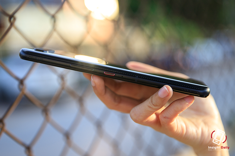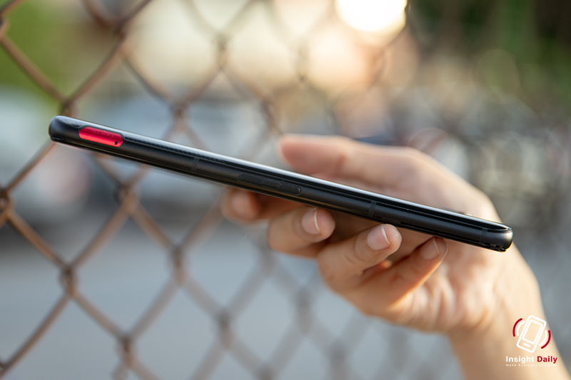 ด้านซ้ายตัวเครื่องมีพอร์ต Side-mounted อยู่ตรงกึ่งกลาง โดยเป็นพอร์ตเชื่อมต่อ USB Type-C ตัวที่ 2 และอีกหนึ่งอันเป็นพอร์ตแบบพิน สำหรับเชื่อมต่อกับอุปกรณ์เสริม ขยับลงมาด้านล่างจะเป็นถาดสำหรับใส่ซิมการ์ด Dual Nano-SIM แบบพลิกหน้า-หลัง พร้อมสีแดงเด่นและดีไซน์เท่ ๆ สะดุดตาเอามาก ๆ ส่วนทางด้านขวาของตัวเครื่องมีปุ่มปรับเพิ่ม-ลดระดับเสียง, ปุ่มเปิด-ปิดเครื่อง, รูไมโครโฟน และมีเซนเซอร์ AirTrigger 5 ฟีเจอร์แตะขอบเครื่องสองตัว บน-ล่าง เหมือนการกดปุ่ม L1, R1 ที่ยังคงใส่มาให้เหมือนเดิม แต่เพิ่มเติมความสามารถใหม่เข้ามาอีกเพียบ