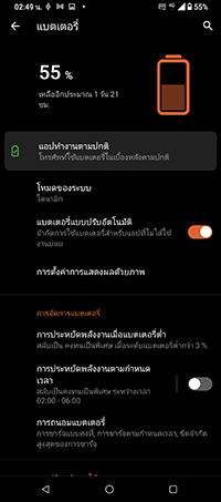 ASUS ROG Phone 5 ยังมาพร้อมกับเทคโนโลยีชาร์จเร็ว Hyper Charge 65W สามารถชาร์จไฟเต็ม 100% ได้ในเวลาเพียง 51 นาที ประสิทธิภาพความเร็วเป็นที่น่าพอใจมากค่ะ ไม่ต้องรอนานเลย พอร์ตชาร์จมี 2 จุด คือ ด้านล่างกับด้านข้าง ซึ่งพอร์ตด้านข้างนี้ เป็นพอร์ตที่เสริมเข้ามาเพื่อสร้างความสะดวกในช่วงที่เราถือมือถือในแนวนอนอยู่ ไม่ว่าจะเล่นเกมหรือดูหนังก็ตาม และกำลังติดลม แต่แบตฯ ดันจะหมดพอดี นอกจากนี้ยังมีโหมดถนอมแบตเตอรี่ สำหรับเปิดการชาร์จแบบคงที่ รวมไปถึงโหมดประหยัดแบตเตอรี่ และการตรวจสอบความสมบูรณ์ของแบตเตอรี่มาให้อีกด้วย