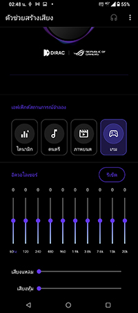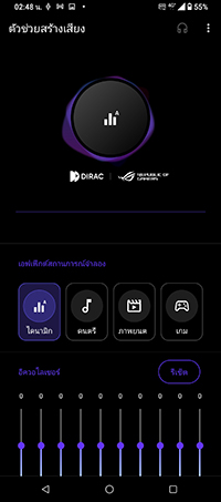 ASUS ROG Phone 5 มาพร้อมระบบเสียง GameFX รุ่นใหม่ ลำโพงคู่สเตอริโอด้านหน้าแบบ Symmetrical 7-magnet พร้อมเทคโนโลยี Dirac, Hi-Res Audio Qualcomm aptX Adative และ ESS DAC เกรด Hi-Fi ผ่านช่องเสียบหูฟัง 3.5 มิลลิเมตร สามารถปรับแต่งเสียงได้ด้วย AudioWizard เปลี่ยนรูปแบบเสียงได้ 4 โหมด เก็บรายละเอียดของเสียงได้ดี สมจริง มีมิติ และดังฟังชัด ไม่ว่าจะเล่นเกม ฟังเพลง ดูหนัง ก็สามารถแสดงประสิทธิภาพออกมาได้ดีมาก ๆ ตอบโจทย์การใช้งาน โดยเฉพาะใครมาสายเสพความบันเทิงไม่เสียใจแน่นอน