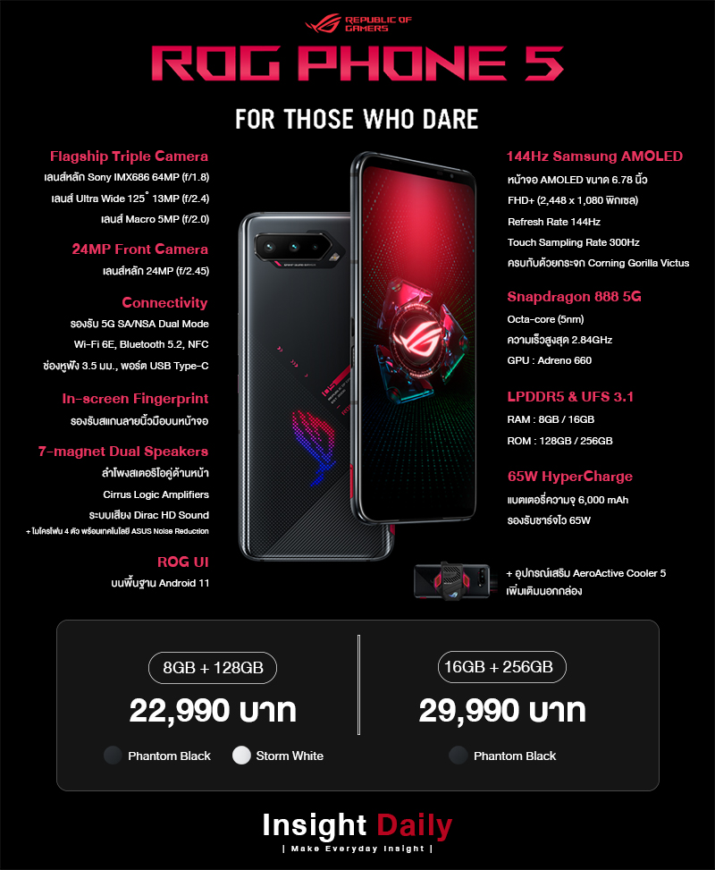 • ROG Phone 5 รุ่น RAM 16GB / ROM 256GB ราคาพิเศษเริ่มต้น 22,990 บาท จากราคาปกติ 29,990 บาท