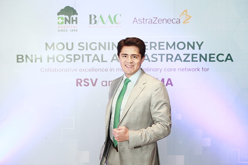 นายโรมัน รามอส ประธานบริษัท แอสตร้าเซนเนก้า ประเทศไทย และ Frontier Markets เปิดเผยว่า การติดเชื้อไวรัส RSV และโรคหืดเป็นโรคที่มีความรุนแรงหากไม่ได้รับการรักษาอย่างถูกวิธี บริษัท แอสตร้าเซนเนก้า (ประเทศไทย) จำกัด และโรงพยาบาลบีเอ็นเอช จึงได้ร่วมลงนาม กรอบความร่วมมือสู่เครือข่ายความเป็นเลิศเพื่อการดูแลรักษาโรคหืดครบวงจรและยกระดับคุณภาพชีวิตเด็กไทยห่างไกลภัยร้ายจากไวรัส RSV หรือ “Collaborative excellence in multidisciplinary care network for RSV and Asthma” โดยทีมสหสาขาวิชาชีพ อีกทั้งยังพัฒนาความร่วมมือในการนำ “นวัตกรรมเพื่อการดูแลรักษาโรคหืดรุนแรงแบบแม่นยำเฉพาะบุคคล” และ “นวัตกรรมภูมิคุ้มกันสำเร็จรูปสำหรับโรค RSV” ที่เข้ามาช่วยลดความเสี่ยงในการเกิดการติดเชื้อไวรัส RSV ระดับรุนแรงในเด็กที่มีความเสี่ยงสูงในช่วง 2 ขวบปีแรกอีกด้วย