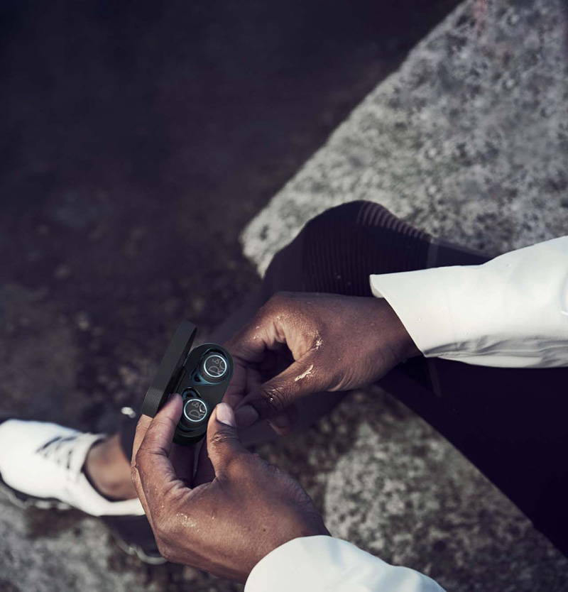 Beoplay E8 Sport โดดเด่นด้วยคุณภาพเสียงระดับเวิร์ลคลาสและดีไซน์ที่ออกแบบมาให้เป็นหูฟังสำหรับใส่เล่นกีฬา และบรรจุมาในกล่องชาร์จไร้สาย หูฟังทำมาจากวัสดุที่ใช้กับอุปกรณ์กีฬาที่ช่วยเพิ่มสมรรถนะในการออกกำลัง ไม่ว่าจะเป็นยางและซิลิโคนปั๊มลวดลาย ที่ผสานเข้ากับรายละเอียดของเส้นอะลูมิเนียมสี Oxygen Blue เพื่อเพิ่มลงตัวและความสวยงามหรูหรา ด้วยด้วยมาตรฐานการกันน้ำระดับ IP57 จึงกันน้ำได้ดีเยี่ยม ให้คุณจดจ่อกับการออกกำลังกายได้อย่างเต็มที่