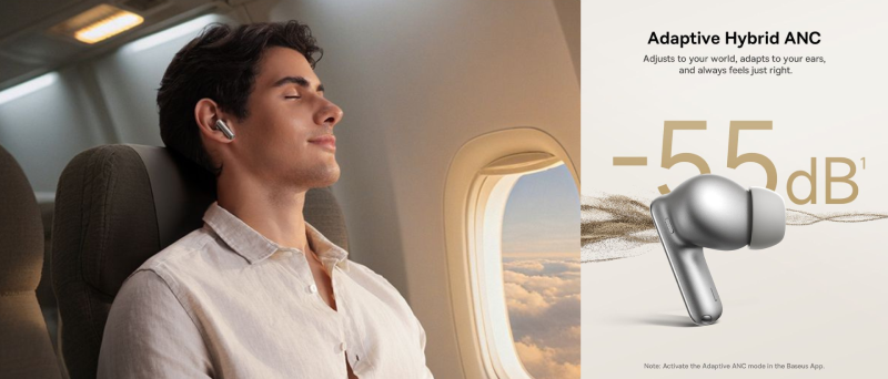 พร้อมระบบตัดเสียงรบกวนแบบ Hybrid Active Noise Cancellation (ANC) ที่ลดเสียงรบกวนได้สูงสุด -55dB ช่วยให้คุณดื่มด่ำกับเสียงเพลงได้อย่างเต็มที่ แม้อยู่ท่ามกลางสภาพแวดล้อมที่วุ่นวาย