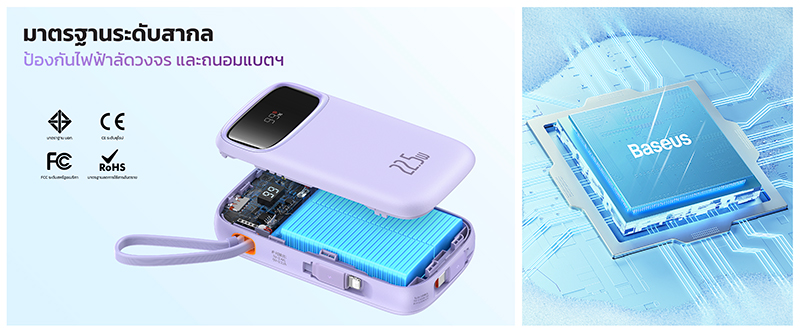 พาวเวอร์แบงค์ Baseus Qpow2 ชาร์จเร็ว ปลอดภัย ด้วยแบตเตอรี่ลิเธียมไอออน ควบคุมอุณหภูมิอย่างอัจฉริยะ ช่วยป้องกันไฟฟ้าลัดวงจร และถนอมแบตฯให้ไม่เสื่อมเร็ว ผ่านมาตรฐานสากล CE จากยุโรป, FCC จากสหรัฐอเมริกา, มอก. ของประเทศไทย และ RoHS (ข้อกำหนดด้านการจำกัดสารอันตราย) เครื่องศูนย์ไทยได้รับประกันนาน 12 เดือน เคลมง่าย ได้ทั้งแบบออนไลน์ ( Line OA : @baseus.th) หรือแบบออฟไลน์หน้าร้านที่สั่งซื้อ ด้วยคอนเซปท์ “เสียเปลี่ยนใหม่ ไม่ต้องซ่อม”