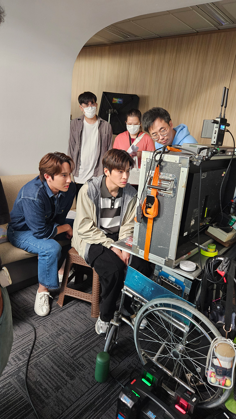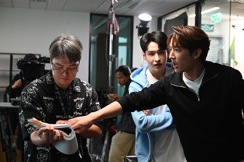 การถ่ายทำแม้จะเป็นช่วงที่ร้อนที่สุดของประเทศไทย เจอทั้งอากาศร้อนจัดและฝนตกหนัก แต่ทีมงานและนักแสดงทุ่มเทเต็มที่ ความตั้งใจของทุกคนในกองถ่ายทำให้ทุกอย่างราบรื่น แม้ว่าจะมีคิวถ่ายทำที่ยากและซับซ้อน แต่บรรยากาศในกองถ่ายก็เป็นกันเองและสนุกสนาน โดยเบื้องหลังเต็มไปด้วยโมเมนต์น่ารักๆ และเคมีดีๆ ของเหล่านักแสดง ทั้ง โคจิ, มาร์ช รวมถึง ยูโด และ ฟลุ้ค ที่เข้าขากันอย่างรวดเร็ว มาร์ชดูนิ่งๆ แต่มีเสน่ห์ขี้เล่นแบบเฉพาะตัว ส่วนสายฮาคู่หู ยูโดและฟลุ้ค ก็มักจะแลกเปลี่ยนมุกตลกกันระหว่างการถ่ายทำ
