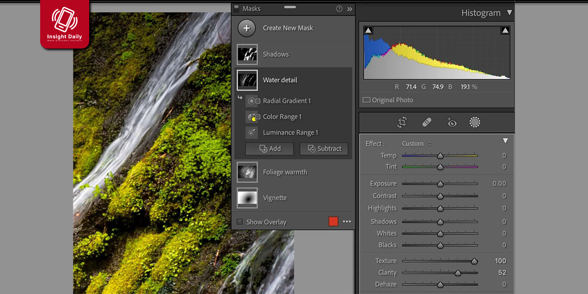 ด้วยเหตุนี้เราจึงสร้างกลุ่มมาสก์ (Mask Groups) ซึ่งช่วยให้สามารถผนวกรวมเครื่องมือมาสก์เข้าด้วยกัน และนั่นหมายความว่าเราจะสามารถผสมผสานเครื่องมือเลือกเข้ากับเครื่องมืออื่นๆ เช่น พู่กัน การไล่ระดับสี เครื่องมือปรับความสว่างและช่วงสี และเครื่องมือที่ขับเคลื่อนด้วย AI อย่างเช่น Select Subject และ Select Sky