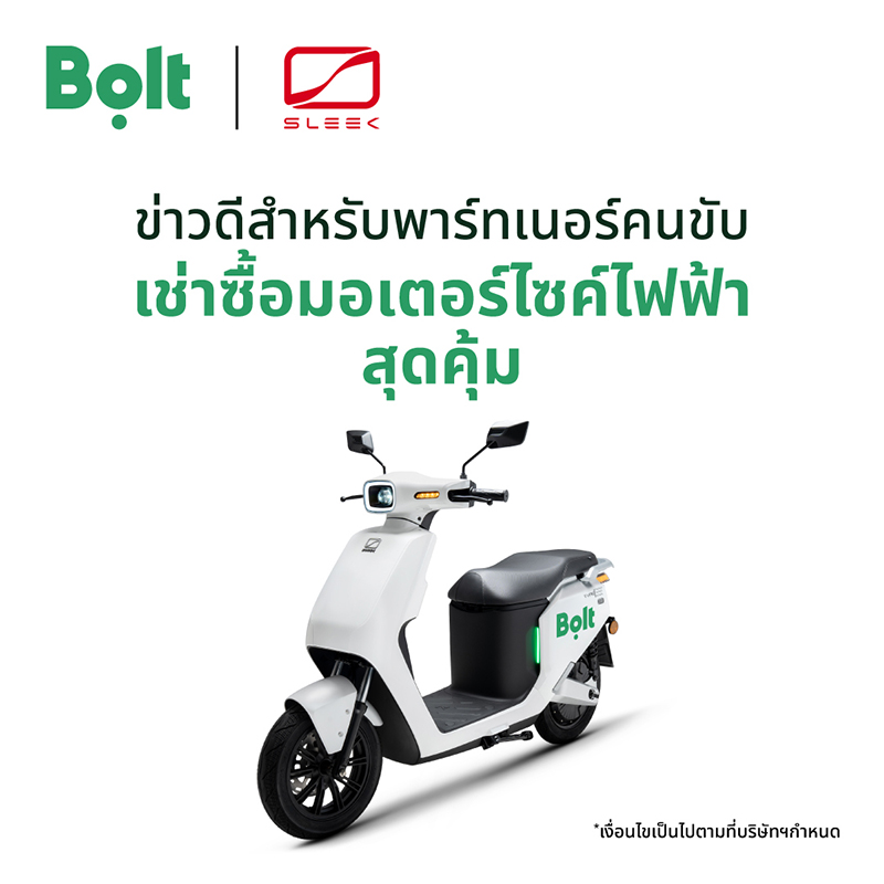 โบลท์ ประเทศไทย ประกาศความร่วมมือกับ SLEEK EV บริษัทผู้ผลิตยานยนต์ไฟฟ้าชั้นนำ ส่งเสริมการใช้รถจักรยานยนต์ไฟฟ้า (EV) ในหมู่พาร์ทเนอร์ผู้ขับขี่โบลท์ผ่านโครงการเช่าซื้อ (Rent-to-Own Scheme) สนับสนุนการใช้ยานพาหนะที่เป็นมิตรต่อสิ่งแวดล้อม พร้อมช่วยผลักดันการเติบโตของตลาด EV ในประเทศไทย ซึ่งคาดว่าในปี 2028 ตลาด EV จะมีการเติบโตถึง 1 ล้านคัน โดยมีอัตราการเติบโต 23.7% ต่อปี