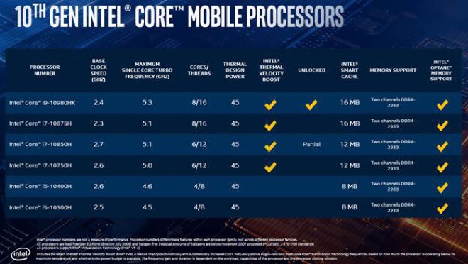 Intel Core H-ซีรีส์ เจนเนอเรชั่น 10 เปิดตัวโมบายล์โปรเซสเซอร์ที่เร็วที่สุดในโลกที่ระดับ 5.3 GHz