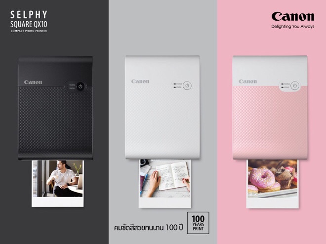 ด้วยน้ำหนักเพียง 445 กรัม และขนาดใหญ่กว่าฝ่ามือเพียงเล็กน้อย SELPHY SQUARE QX10 จึงพกพาใส่กระเป๋าได้สะดวก พร้อมแชร์ภาพสุดประทับใจได้ทุกเวลา อีกทั้งมีแบตเตอรีในตัว จึงนำไปพรินท์ภาพได้ทุกที่และชาร์จกับพาวเวอร์แบงก์ได้ด้วย ตัวเครื่องดีไซน์เรียบเก๋ มีให้เลือก 3 สี คือ ขาว ชมพู และดำ