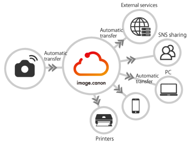 นอกจากนี้ แคนนอนยังได้เปิดตัว image.canon แพลตฟอร์มคลาวด์ใหม่ที่เชื่อมโยงกล้องแคนนอนกับคอมพิวเตอร์ สมาร์ทโฟน และเว็บไซต์ต่างๆ เริ่มให้บริการตั้งแต่เดือนเมษายน 2563 เป็นต้นไป โดยช่วยให้ผู้ใช้สามารถทำการอัพโหลดอัตโนมัติ สำหรับไฟล์ภาพและวิดีโอ คุณภาพตามที่ถ่ายไว้ ได้โดยตรงจากกล้องแคนนอนที่มีฟังก์ชันถ่ายโอนภาพอัตโนมัติผ่าน Wi-Fi รวมถึงส่งไฟล์ไปยังคอมพิวเตอร์หรือสมาร์ทโฟนที่เชื่อมต่ออยู่ และเว็บไซต์ต่างๆ ช่วยในการทำงานของนักถ่ายภาพ ผู้ที่สนใจการตกแต่งภาพ รวมถึงผู้ใช้ทั่วไปที่อยากแชร์ภาพในโซเชียลมีเดีย