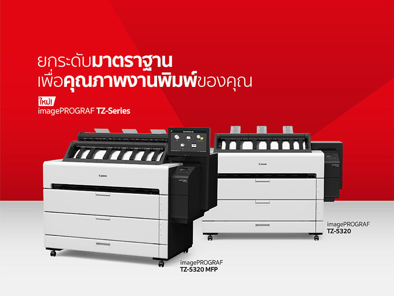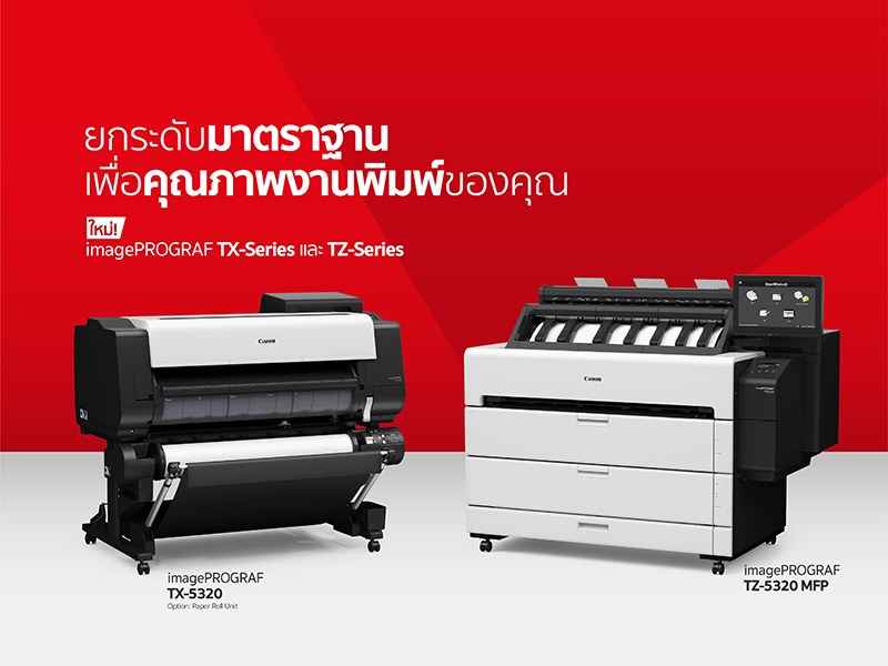 แคนนอน (Canon) แบรนด์ผู้นำด้านเทคโนโลยีอิมเมจจิ้งระดับโลก ประกาศเปิดตัวเครื่องพิมพ์หน้ากว้างรุ่นใหม่ทั้ง imagePROGRAF TZ-5320 series และ TX Series (รุ่น TX-5420/5320/5220) โดยมีทั้งพรินเตอร์หน้ากว้างแบบฟังก์ชันเดียวและมัลติฟังก์ชัน [1] เพื่อตอบสนองความต้องการด้านงานพิมพ์ที่หลากหลายในโลกธุรกิจวันนี้ โดยรุ่น imagePROGRAF TZ-5320 สามารถพิมพ์แบบก่อสร้างจำนวนมากได้อย่างรวดเร็ว ตอบโจทย์อุตสาหกรรมก่อสร้าง การออกแบบกราฟิก และธุรกิจรับพิมพ์งานตามสั่งที่ต้องการพรินเตอร์ความเร็วสูง ส่วน TX series มาพร้อมฟีเจอร์การพิมพ์ที่หลากหลาย ครอบคลุมทั้งการพิมพ์แบบก่อสร้าง โปสเตอร์ และบอร์ดประกาศขนาดใหญ่ ให้คุณพร้อมรับงานใหญ่ทุกสเกลได้อย่างมั่นใจ