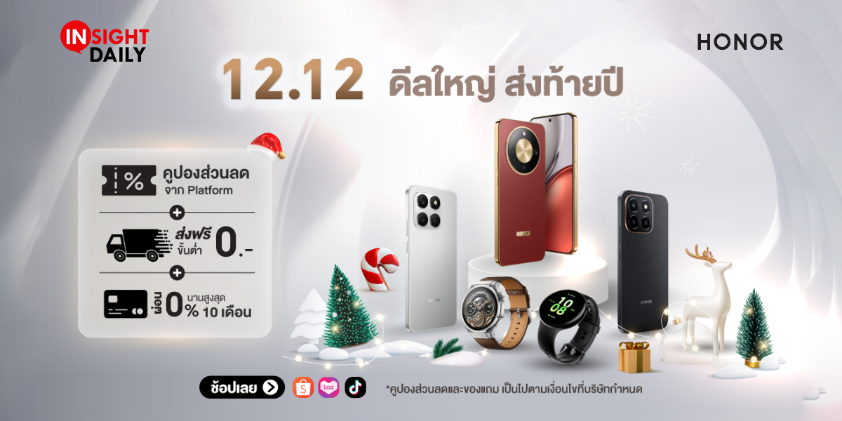 ดีลใหญ่ ส่งท้ายปี! HONOR Official Store x 12.12 ลดแรงสูงสุด 56% รับโค้ดลดเพิ่ม 3,000 บาท
