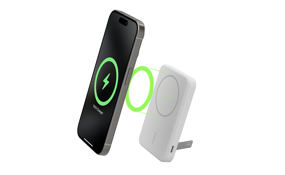 แบตสำรองไร้สาย Qi2 (10,000mAh) รองรับชาร์จเร็วสูงสุด 15W พร้อมขาตั้งในตัว สามารถใช้เป็นแท่นชาร์จไร้สายขณะชาร์จผ่านสายได้ เหมาะสำหรับการดูวิดีโอหรือสตรีมไลฟ์ระหว่างเดินทาง ราคาพิเศษ 3,190 บาท (ราคาปกติ 3,590 บาท)
