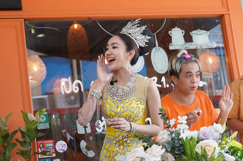 เบื้องหลังฉากนี้ เชื่อว่าคงต้องมีใครหลาย ๆ คน สะดุดตาความสวย และความสามารถในการร้องการร้องลิเกของ ‘แป้ง มิตรชัย’ ลูกสาวของ ‘เอ ไชยา มิตรชัย’ ที่ลูกไม้หล่นใกล้ต้นสุด ๆ แต่งานนี้ก็ไม่ใช่ง่ายสำหรับการร้องลิเก เพราะแป้งต้องคิดคำร้องเชิญชวนแบบสด ๆ กว่าจะผ่านได้ก็ไม่ใช่เรื่องง่ายเลยทีเดียว โดยเฉพาะหนุ่มอั๋น ที่ต้องจัดสเต็ป ทำนอง และท่าเต้นด้วย