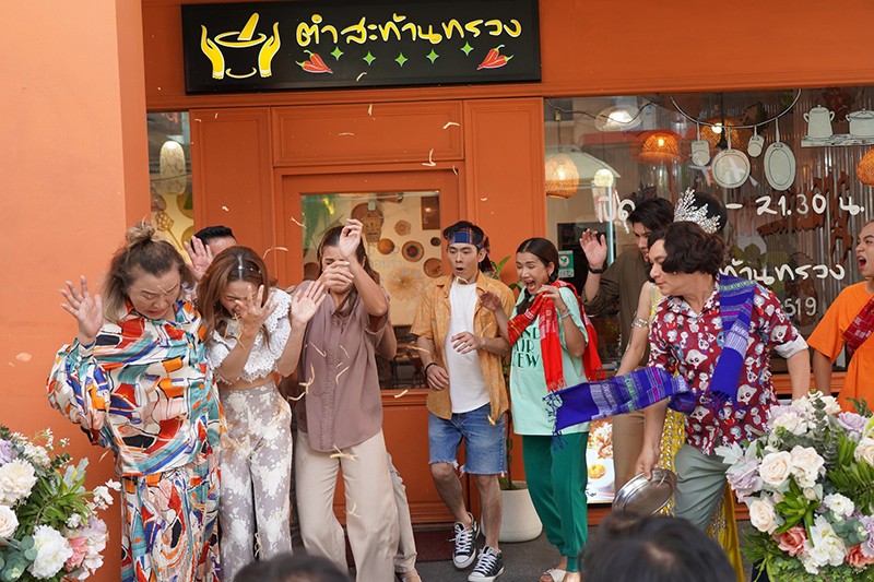 แต่ก็ยังไม่เหนื่อยเท่าฉากที่ทุกคนต้องทะเลาะพังร้านกันของแป้งและต้นข้าว งานนี้ ต้นข้าวซ้อมจังหวะในการสาดส้มตำมาอย่างดี เล็งเป้าหมายอย่างแม่นยำ ระหว่างที่แป้งกำลังโพนทะนาเรียกแขกเข้าร้านส้มตำสะท้านทรวงอย่างมีความสุข ต้นข้าวได้จังหวะรีบคว้าถาดส้มตำปูปลาร้า สาดใส่แป้งอย่างสะใจ อั๋นซึ่งยืนห้ามอยู่ยังไม่ทันตั้งตัว เส้นมะละกอก็ราดไปเต็มตัวแป้งไปหมด งานนี้ผองเพื่อนขอชำระความแค้นสาดทุกอย่างที่ขวางหน้าตีกลับใส่ต้นข้าวสารพัด