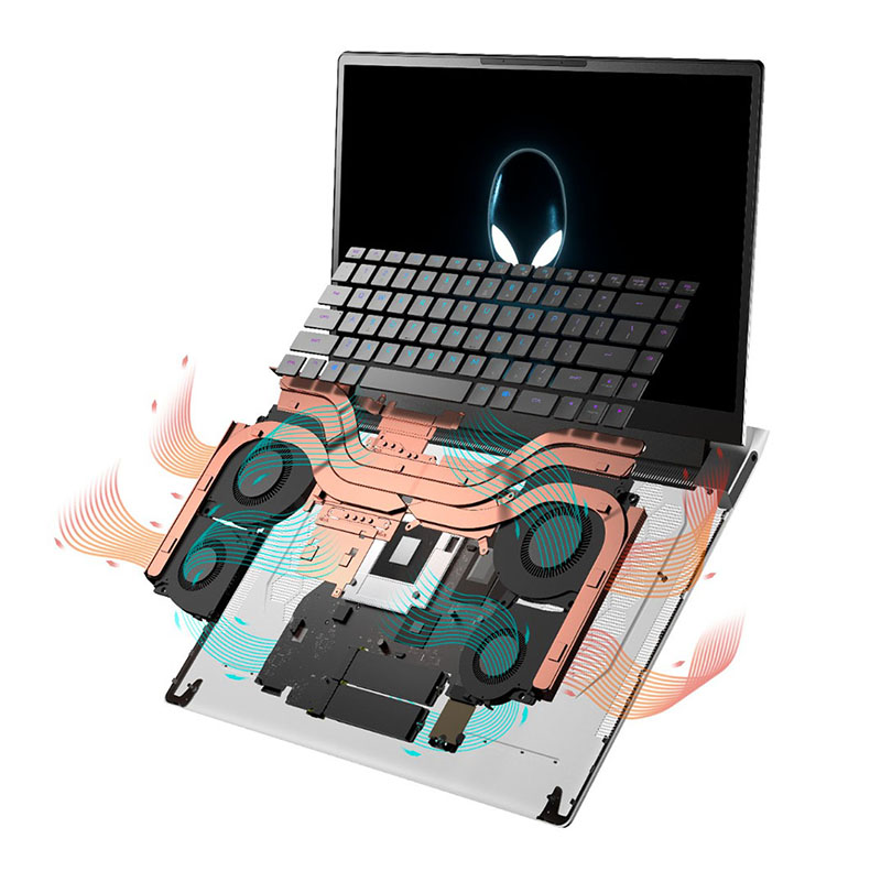 พร้อมด้วย HyperEfficient Voltage Regulation เพื่อการเพิ่มประสิทธิภาพในช่วงเวลาอันยาวนานของการเล่นเกม เครื่อง X-Series ให้การระบายความร้อนที่มากยิ่งขึ้นกว่าเดิม ตามมาด้วยประสิทธิภาพในการเล่นเกมที่ดียิ่งขึ้น การออกแบบพัดลมแบบ Quad Fan ที่เป็นเอกสิทธิ์เฉพาะของ Alienware ช่วยกระจายลมอย่างมีประสิทธิภาพไปยังระบบ ผ่านไปยังแชสซี และจุดเก็บความร้อนต่างๆ ภายในเพื่อช่วยให้เครื่องเล่นเกมเย็นอยู่เสมอ และสุดท้าย เทคโนโลยีการควบคุมพัดลมอัจฉริยะ หรือ Smart Fan control ที่รอการจดสิทธิบัตรอยู่นั้น ใช้ปัญญาประดิษฐ์ หรือ AI เพื่อช่วยเพิ่มประสิทธิภาพการทำงานของแอพพลิเคชั่น โดยที่พัดลมแต่ละตัวจะหมุนเร็วขึ้น ช้าลง หรือรักษาความคงที่โดยอิสระ ขึ้นอยู่กับเซ็นเซอร์ต่างๆ ที่วางไว้โดยรอบชิ้นส่วนของระบบหลักอย่างมีกลยุทธ์