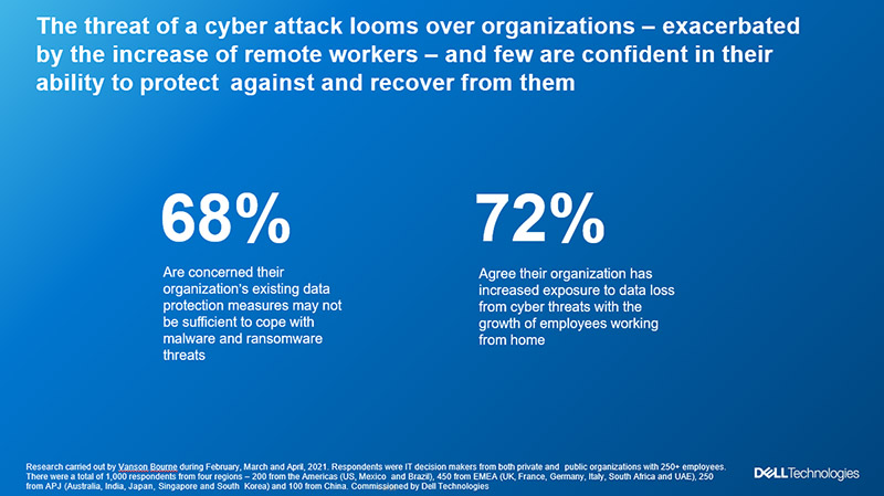 การจัดทำสำรวจ Dell Technologies GDPI ประจำปี 2021 กับผู้มีอำนาจตัดสินใจด้านไอทีทั่วโลกนับ 1,000 รายโดย 250 รายมาจากเอเชียแปซิฟิกและญี่ปุ่น (ออสเตรเลีย อินเดีย ญี่ปุ่น สิงคโปร์ และเกาหลีใต้) แสดงให้เห็นว่าองค์กรมากมายกำลังต้องต่อสู้กับการเติบโตของข้อมูลอย่างต่อเนื่องและความซับซ้อนด้านการปกป้องข้อมูลที่เพิ่มมากขึ้น ผลการศึกษาพบว่าองค์กรทั่วโลกกำลังบริหารจัดการปริมาณข้อมูลที่เพิ่มจาก 5 ปีก่อนถึงกว่า 10 เท่า จากปริมาณข้อมูล 1.45 เพตะไบต์ ในปี 2016 เพิ่มเป็น 14.6 เพตะไบต์ในปี 2021 นอกจากนี้ ผู้ตอบการสำรวจ 82% ในทั่วโลก และ 82% ในเอเชียแปซิฟิกและญี่ปุ่น มีความกังวลว่าโซลูชันด้านการปกป้องข้อมูลที่มีอยู่ในองค์กรจะไม่สามารถรับมือกับความท้าทายด้านธุรกิจทั้งหมดที่จะเกิดขึ้นในอนาคตได้ โดยพบว่าจากความกังวลเหล่านี้ 33% ขององค์กรทั่วโลก และ 38% ในเอเชียแปซิฟิก ได้มีการรายงานถึงการสูญหายของข้อมูลในปีที่ผ่านมา และ 45% ขององค์กรทั่วโลก กับ 42% ในเอเชียแปซิฟิก เคยมีประสบการณ์เรื่องการดาวน์ไทม์ของระบบแบบที่ไม่ได้วางแผนล่วงหน้า