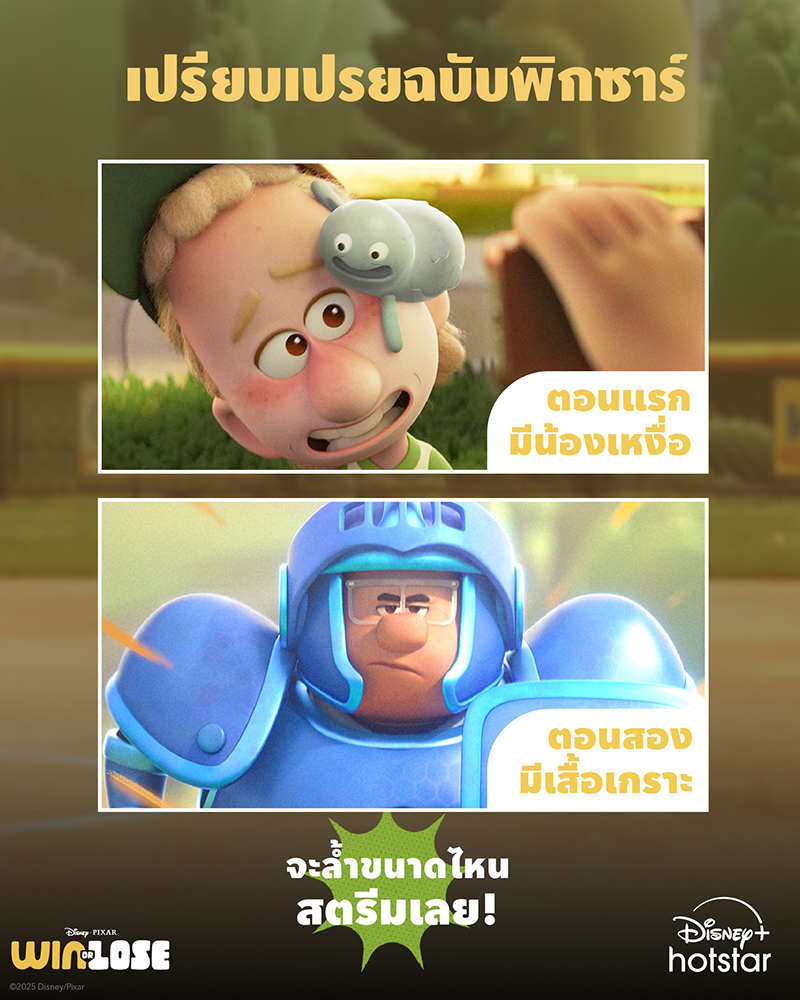 Disney+ Hotstar ชวนคุณมาร่วมนิยามความหมายของชัยชนะและความพ่ายแพ้ผ่านซีรีส์แอนิเมชัน “Win or Lose” ซีรีส์ออริจินัลเรื่องแรกจาก Pixar Animation Studios กำกับโดย Carrie Hobson และ Michael Yates สองผู้กำกับที่เคยร่วมงานกับ Pixar มาแล้วในภาพยนตร์ชื่อดังอย่าง Toy Story 4, Luca และ Soul ซึ่งทั้งคู่ได้นำประสบการณ์ด้านการเล่าเรื่องมาสร้างซีรีส์ที่เจาะลึกถึงมุมมองของแต่ละตัวละครที่อยู่ในสถานการณ์เดียวกัน