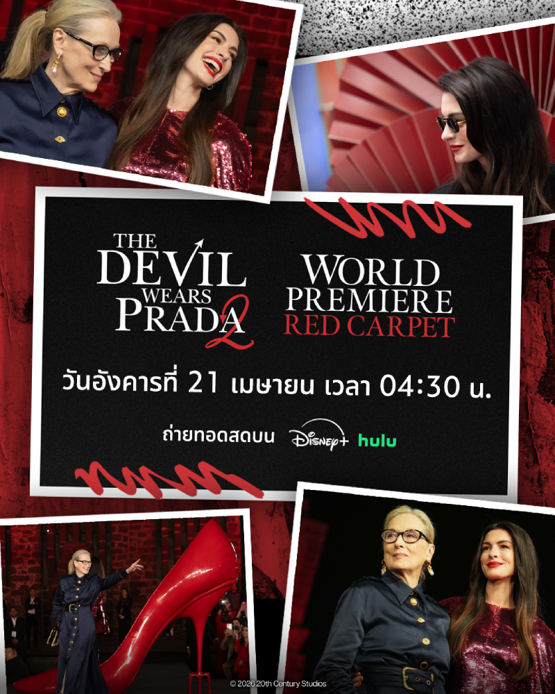 เตรียมเกาะติดพรมแดงสุดแกลมของ “The Devil Wears Prada 2” แบบสด ๆ ในเช้าวันจันทร์ที่ 21 เมษายนนี้ เวลา 04.30 น. บน Disney+ และร่วมนับถอยหลังสู่การกลับมาของหนึ่งในภาพยนตร์ที่นิยามคำว่าสไตล์ให้ทั้งเจเนอเรชันอีกครั้ง พร้อมกัน 30 เมษายนนี้ ในโรงภาพยนตร์