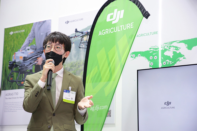 พร้อมกันนี้ยังได้นำโดรนเกษตรรุ่น DJI Agras T30 ที่มีการเปลี่ยนรูปโฉมใหม่มาอวดโฉมในครั้งนี้ ซึ่งมีจุดเด่นที่จะช่วยให้การฉีดพ่นมีประสิทธิภาพมากขึ้น โดยเฉพาะอย่างยิ่งสำหรับพืชเกษตรในกลุ่มไม้ผล ด้วยการพัฒนาและใช้โซลูชันการเกษตรดิจิทัลของ DJI T30 ที่มาช่วยลดการใช้ปุ๋ยและเพิ่มผลผลิต ด้วยแนวทางการปฏิบัติที่ดีที่สุดของการขับเคลื่อนโดรนด้วยข้อมูลที่มีประสิทธิภาพ พร้อมยังมีความแม่นยำในการวางแผนการควบคุมระยะไกล พร้อมด้วยแพลตฟอร์ม Smart Agriculture Cloud และการทำแผนที่บนคลาวด์ เกษตรกรสามารถบริหารจัดการและตอบโจทย์การทำเกษตรยุคดิจิทัลได้โดยง่าย