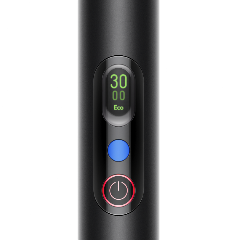 บนเครื่อง Dyson PencilVacTM ยังมีหน้าจอ LCD ที่แจ้งถึงโหมดที่กำลังเลือกใช้ รวมถึงระยะเวลาของแบตเตอรี่ที่เหลืออยู่อีกด้วย