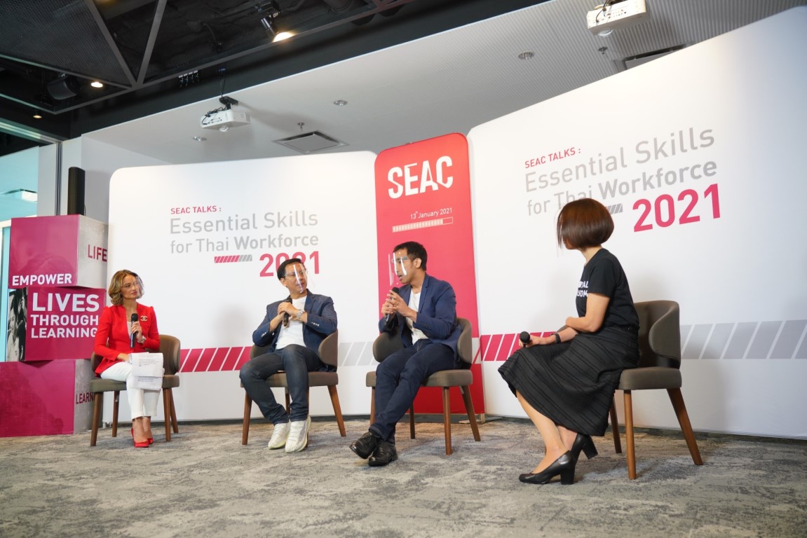 เพื่อค้นหาวิธีการและทักษะใหม่ New Skillset ด้วยตัวเอง ย่อมก่อให้เกิดประโยชน์ต่อองค์กรเพื่อขับเคลื่อนธุรกิจมากที่สุด” ล่าสุด SEAC ได้จัดงาน SEAC Talks Forum: Essential Skills for Thai Workforce 2021 เพื่อร่วมเสวนาข้อมูลสู่การยกระดับศักยภาพคน สังคม และธุรกิจไทย บนบริบทที่เป็นคำถามของสังคมไทยว่า “ถึงเวลาแล้วหรือยัง ที่ต้อง “ปรับ” และ “เปลี่ยน” การเรียนรู้สู่โลกทำงานและยกระดับธุรกิจในอนาคต”