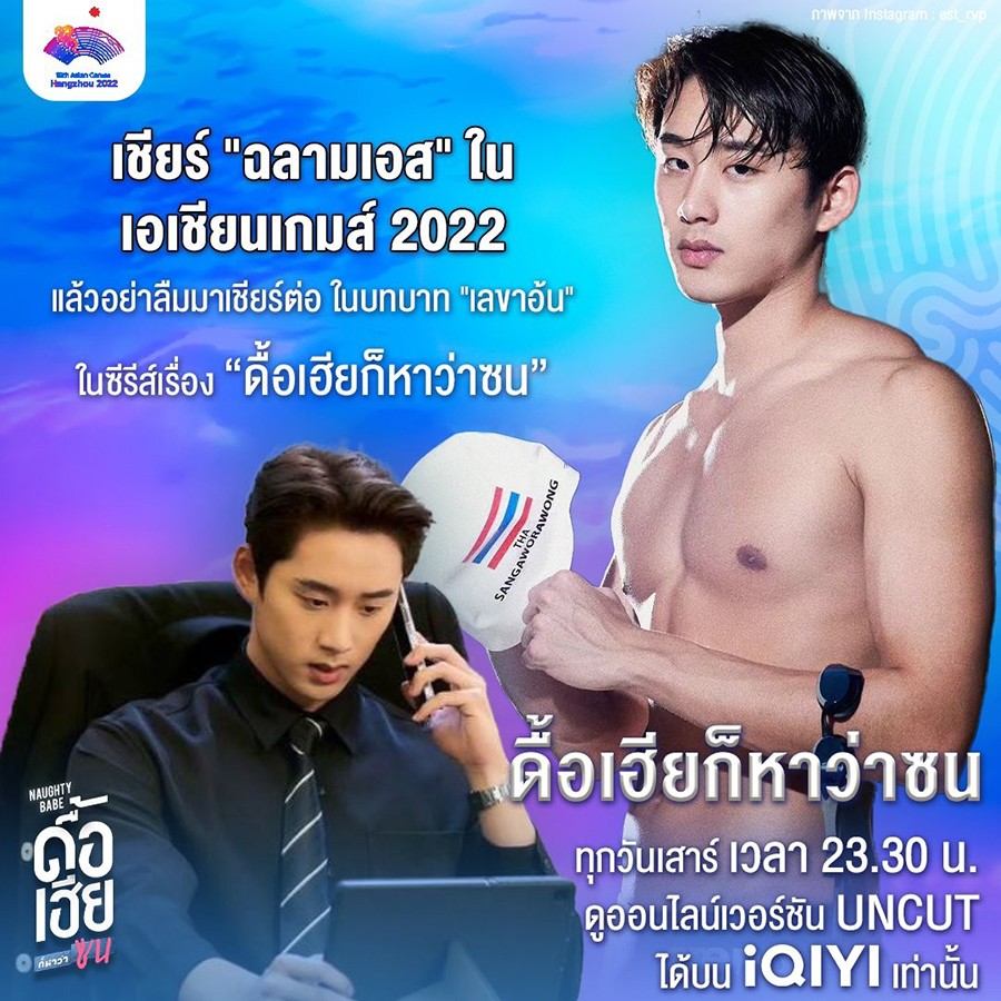 เพราะนอกจากจะเก่งด้านการว่ายน้ำแล้ว เอสยังเป็นนักแสดงซีรีส์วายกระแสแรงอย่างเรื่อง ดื้อเฮียก็หาว่าซน (Naughty Babe Series) กับการรับบทบาท อ้น เลขาและบอดี้การ์ดของเฮียอี้ (รับบทโดย แม้ก กรธัสส์) ที่เขาเป็นคนที่คอยดูแลทุกอย่างในชีวิตของเฮียอี้ คอยอยู่เคียงข้างและช่วยเหลือเฮียอี้อยู่เสมอ ซึ่งเขาได้ทุ่มเทและได้ถ่ายทอดบทบาทเลขาอี้ออกมาได้อย่างดีในหลากหลายมิติของการแสดง จนแฟนๆ ต่างบอกเป็นเสียงเดียวกันว่า “ไม่ว่าจะบทบาทนักกีฬาหรือนักแสดง หนุ่มเอสทุ่มเทออกมาได้อย่างสมบูรณ์แบบ” แฟนๆ สามารถร่วมให้กำลังเขาได้ผ่านในซีรีส์ ดื้อเฮียก็หาว่าซน (Naughty Babe Series)