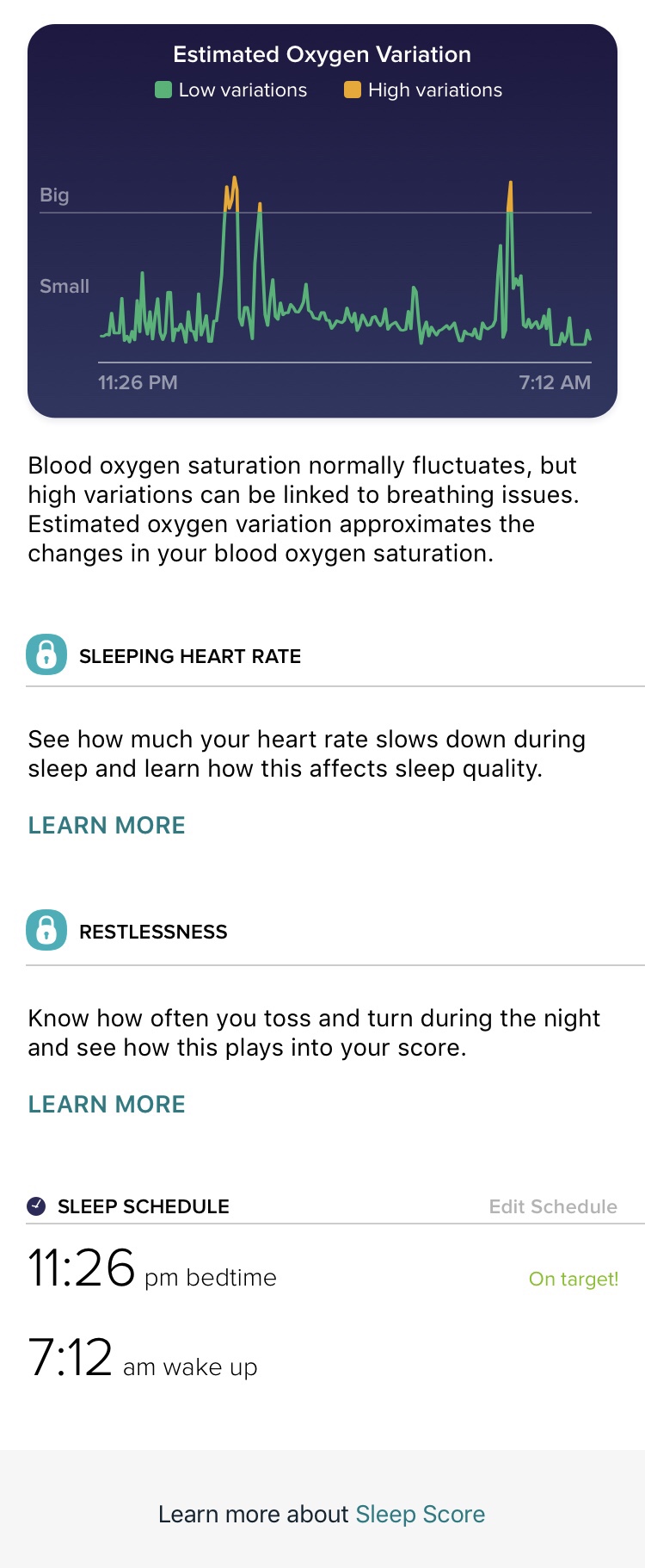 การตรวจกราฟออกซิเจนในเลือดนี้ เป็นหนึ่งในความตั้งใจของฟิตบิทที่จะมอบข้อมูลที่มีประโยชน์แก่ผู้ใช้งานอย่างสูงสุด โดยไม่ใช่การตรวจสอบในทางการแพทย์ ซึ่งหลังจากตรวจสอบกราฟข้อมูลนี้แล้ว หากผู้ใช้มีข้อสงสัยเพิ่มเติม ควรปรึกษาผู้เชี่ยวชาญด้านสุขภาพ