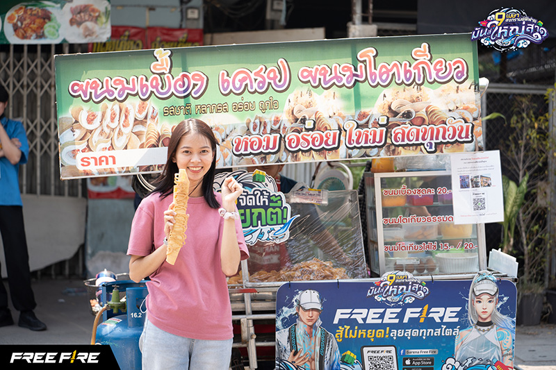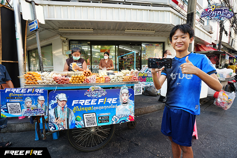 ไฮไลต์แรก Wrap รถเข็นขายอาหารเจ้าเด็ด ชวนคอเกมทั้งเก่าและใหม่เข้ามาเล่น Free Fire อาทิ รถ ขายลูกชิ้นปิ้ง ไส้กรอกทอด โตเกียว พร้อมจัดหนักด้วยสื่อสารแคมเปญ ฟีฟายอัปให้ ชิ้นใหญ่ แบบตัวตึง อัปไซส์ ลูกชิ้นขนาดยักษ์ เท่ากำปั้น โตเกียวใหญ่เท่าแขน ไส้แน่น เต็มทุกคำ ขนมเบื้อง ใหญ่กว่าฝ่ามือ ไส้ทะลัก สอดคล้องกับไอเทมอัปไซส์และ ของรางวัลในเกมช่วงกิจกรรมสงกรานต์นี้