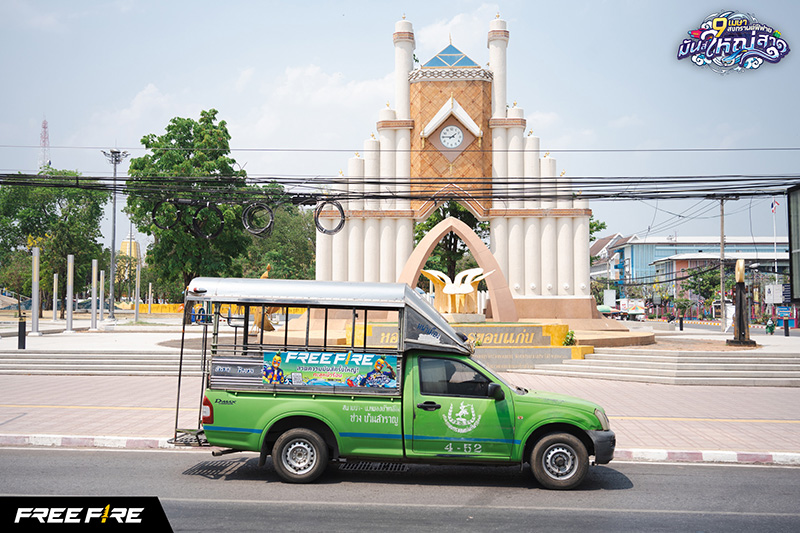 ไฮไลต์ที่ 3 Wrap รถสองแถวรับส่งผู้โดยสารที่อยู่คู่กับคนในพื้นที่ พร้อมจัดรถแห่กระจายเสียงสุดจี๊ด เข้าถึงคน ในชุมชนให้รู้ถึงการมาของความ ‘มันส์ใหญ่สาด’ ที่จะเกิดขึ้นใน Free Fire