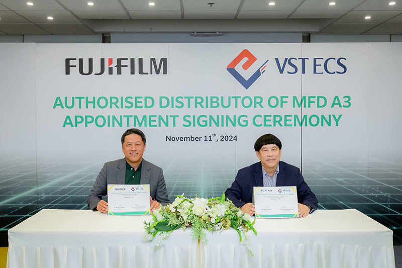 บริษัท ฟูจิฟิล์ม บิสซิเนส อินโนเวชั่น (ประเทศไทย) จำกัด ประกาศความร่วมมือครั้งสำคัญ ด้วยการลงนามแต่งตั้งผู้จำหน่ายและบริการหลังการขาย MFD A3 อย่างเป็นทางการ นับเป็นการผนึกกำลังของสองยักษ์ใหญ่ผู้นำในอุตสาหกรรมไอที โดย “ฟูจิฟิล์ม บิสซิเนส อินโนเวชั่น” ผู้เชี่ยวชาญด้านโซลูชันสำนักงานและเครื่องพิมพ์ ร่วมกับ “วีเอสที อีซีเอส” ผู้นำเข้าและจัดจำหน่ายผลิตภัณฑ์ไอทีรายใหญ่ระดับประเทศ ความร่วมมือนี้มุ่งขยายฐานลูกค้าในกลุ่มไอทีและ Office Automation