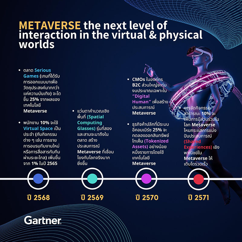การ์ทเนอร์เปิด 6 เทรนด์ช่วยผลักดันการนำเทคโนโลยี Metaverse มาใช้ในปัจจุบัน และจะยังเป็นเทรนด์หลักที่ขับเคลื่อนการใช้งานต่อไปอีก 3-5 ปีข้างหน้าอย่างต่อเนื่อง