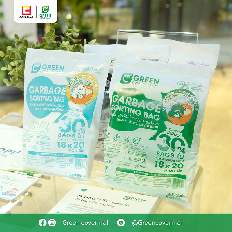 นายณัฐวุฒิ เลิศรัตน์เดชากุล ผู้ก่อตั้งและประธานกรรมการบริษัท โคเวอร์แมท จำกัด เปิดเผยว่า “บริษัทมีความตระหนักและให้ความสำคัญในการดำเนินธุรกิจสีเขียว (Bio-Circular-Green) ที่มีความใส่ใจ รับผิดชอบต่อสิ่งแวดล้อม เพื่อสังคมที่ยั่งยืน (Sustainability) ให้แก่กลุ่มลูกค้าในประเทศไทย และขยายสู่ภูมิภาคเอเชียตะวันออกเฉียงใต้ โดยทางบริษัท ฯ ได้ออกผลิตภัณฑ์สินค้ารักษ์โลกตัวใหม่ ภายใต้แบรนด์สินค้า “Green Covermat (กรีนโคเวอร์แมท)” ประกอบด้วยสินค้าจำนวน 18 SKU ได้แก่ กระดาษรักษ์โลกกรีนโคเวอร์แมท (Green Covermat Sheet) ขนาด A4 ความหนา 150,200,300 ไมครอน บรรจุแพ็คละ 10,20 แผ่น และถุงแยกขยะรักษ์โลกกรีนโคเวอร์แมท (Garbage Sorting Bag) 4 สี 3 ไซส์ ได้แก่ ขนาด S (18 x 20 นิ้ว) M (22 x 30 นิ้ว) L (30 x 40 นิ้ว)