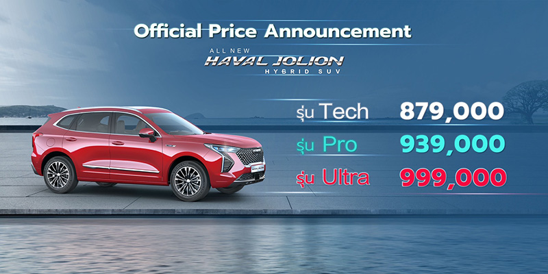 เกรท วอลล์ มอเตอร์ เปิดตัว All New HAVAL JOLION Hybrid SUV (ออล นิว ฮาวาล โจไลอ้อน ไฮบริด เอสยูวี) อย่างเป็นทางการเป็นครั้งแรกของโลกที่ประเทศไทย ชูแนวคิด ‘Your Intelligent SUV’ พร้อมประกาศราคาของทั้ง 3 รุ่น ได้แก่ รุ่น TECH ที่ 879,000 บาท รุ่น PRO ที่ 939,000 บาท และรุ่น ULTRA ที่ 999,000 บาท จัดเต็มกับแคมเปญ PREMIERE DEAL สุดพิเศษช่วงเปิดตัว เพื่อส่งมอบสิทธิประโยชน์มากมายให้กับลูกค้า และเตรียมส่งมอบรถล็อตแรกภายในเดือนธันวาคมนี้ นอกจากนี้ ยังได้ประกาศจัดตั้ง HAVAL USER COMMITTEE อย่างเป็นทางการในประเทศไทย โดยร่วมมือกับผู้ใช้รถจริงในการรับฟังและแลกเปลี่ยนความคิดเห็น เพื่อนำไปใช้ในการพัฒนาผลิตภัณฑ์และการบริการให้ตอบโจทย์ผู้ใช้มากยิ่งขึ้น รวมถึงสร้างสายสัมพันธ์อันดีระหว่างผู้ใช้และแบรนด์ ตอกย้ำแนวคิดการดำเนินธุรกิจที่มีผู้บริโภคเป็นศูนย์กลาง