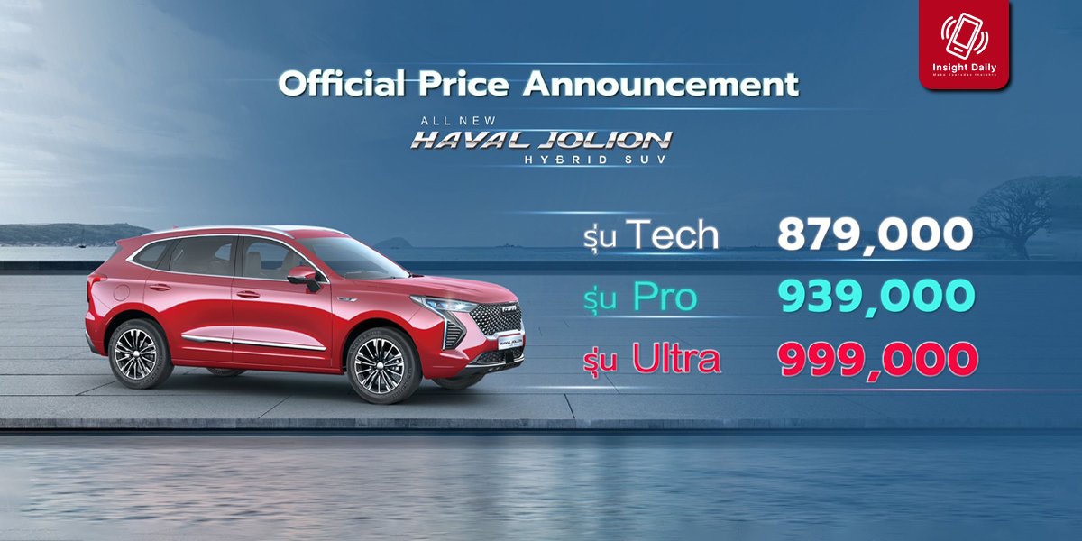 เกรท วอลล์ มอเตอร์ เปิดตัว All New HAVAL JOLION Hybrid SUV (ออล นิว ฮาวาล โจไลอ้อน ไฮบริด เอสยูวี) อย่างเป็นทางการเป็นครั้งแรกของโลกที่ประเทศไทย ชูแนวคิด ‘Your Intelligent SUV’ พร้อมประกาศราคาของทั้ง 3 รุ่น ได้แก่ รุ่น TECH ที่ 879,000 บาท รุ่น PRO ที่ 939,000 บาท และรุ่น ULTRA ที่ 999,000 บาท จัดเต็มกับแคมเปญ PREMIERE DEAL สุดพิเศษช่วงเปิดตัว เพื่อส่งมอบสิทธิประโยชน์มากมายให้กับลูกค้า และเตรียมส่งมอบรถล็อตแรกภายในเดือนธันวาคมนี้ นอกจากนี้ ยังได้ประกาศจัดตั้ง HAVAL USER COMMITTEE อย่างเป็นทางการในประเทศไทย โดยร่วมมือกับผู้ใช้รถจริงในการรับฟังและแลกเปลี่ยนความคิดเห็น เพื่อนำไปใช้ในการพัฒนาผลิตภัณฑ์และการบริการให้ตอบโจทย์ผู้ใช้มากยิ่งขึ้น รวมถึงสร้างสายสัมพันธ์อันดีระหว่างผู้ใช้และแบรนด์ ตอกย้ำแนวคิดการดำเนินธุรกิจที่มีผู้บริโภคเป็นศูนย์กลาง