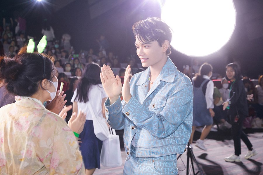 นอกจากนี้ ยังมีขนมไทยมาให้ ติงอวี่ซี ได้ลองชิม แล้วให้แฟน ๆ ที่ร่วมกิจกรรมบนเวทีทายว่าชอบอะไร ซึ่งเสี่ยวติงของเราก็เลือกเป็นขนมลูกชุบนั่นเอง พร้อมกับอีกหนึ่งไฮไลท์ที่เรียกเสียงกรี้ดจากแฟนคลับในงานได้อย่างล้นหลาม นั่นก็คือเซ็ตภาพ ชุดไทยและชุดนักเรียนไทยสุดเอ็กซ์คลูซีฟ ที่พระเอกติงอวี่ซีตั้งใจทำเพื่อขอบคุณแฟน ๆ โอ้โฮ! หล่อทุกลุคไปเลย!